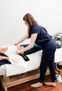 First, we will apply a superficial enzyme solution to the skin to help remove dead or damaged skin cells and debris from the surface. Then, we will cleanse this solution and apply another containing either glycolic or lactic acid. Finally, we apply cryogenic therapy to freeze and eliminate the topmost layer of cells from the surface of the skin. Afterward, some of our patients choose to apply hydrating, nourishing vitamins and/or SPF.